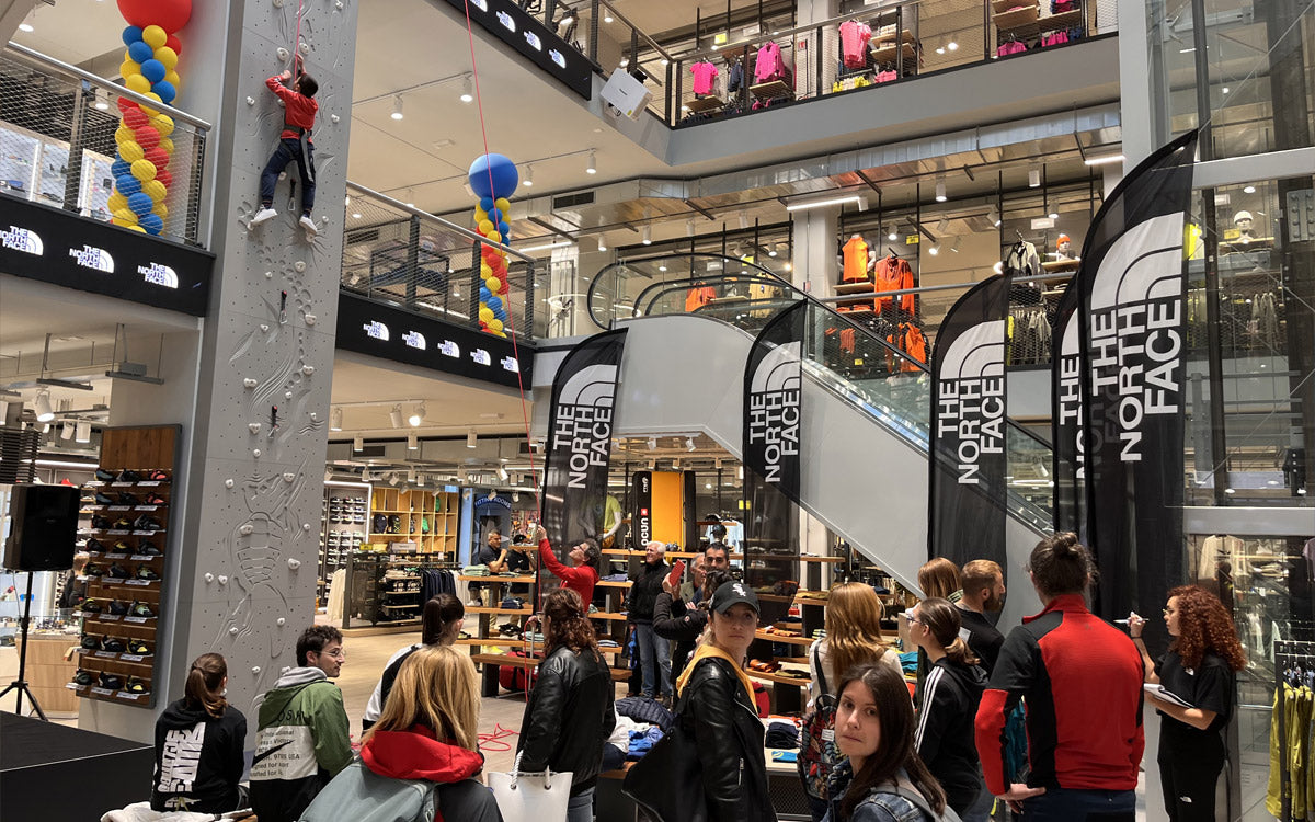 Il Palazzo dello Sport di DF Sport Specialist è una cattedrale moderna dedicata agli sportivi. Con le sue ampie aree di vendita, organizzate tematicamente per guidare i visitatori attraverso diverse discipline sportive, il palazzo offre un'esperienza unica nel suo genere. I clienti possono testare attrezzature in zone interattive, arrampicarsi su parete indoor, o immergersi in ambientazioni virtuali che riproducono scenari sportivi reali.